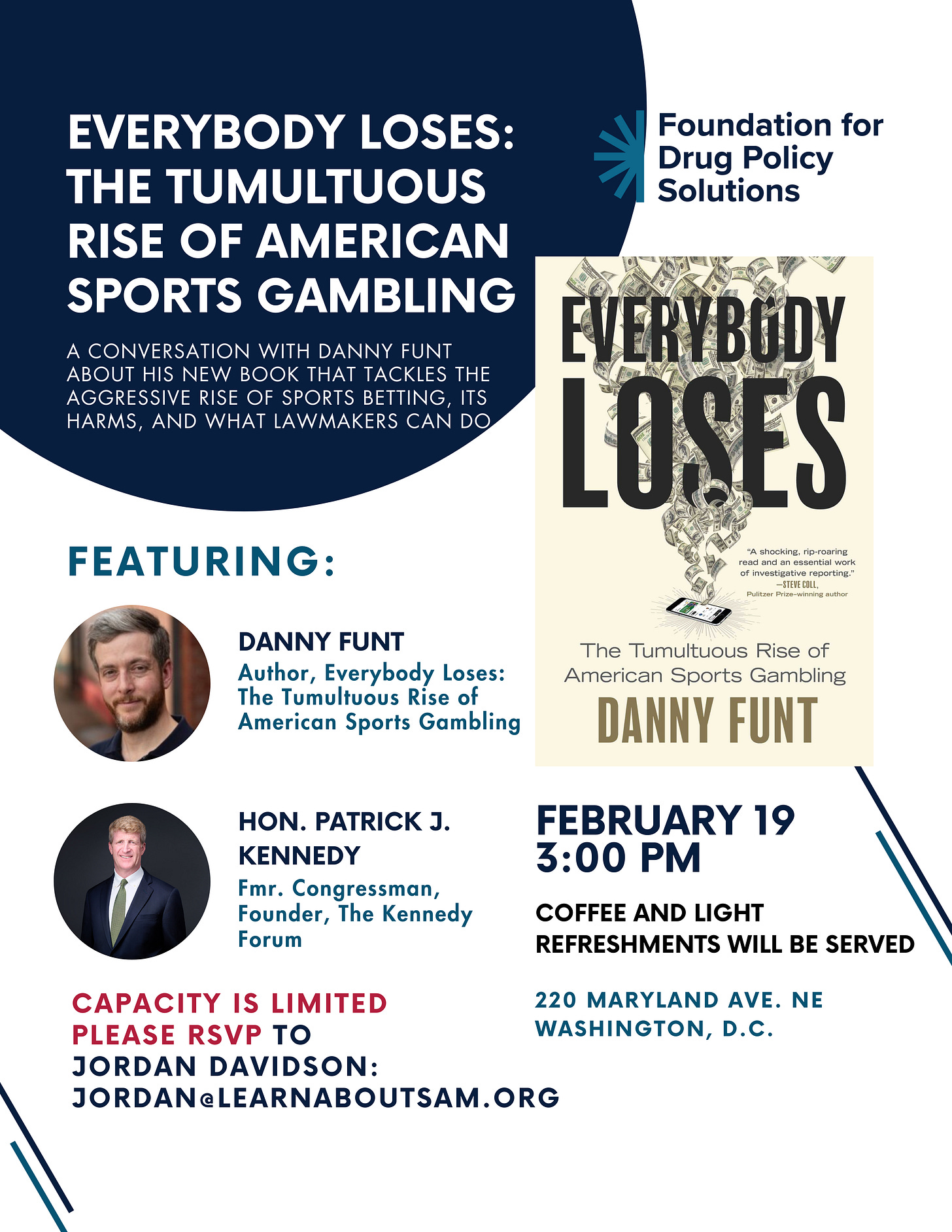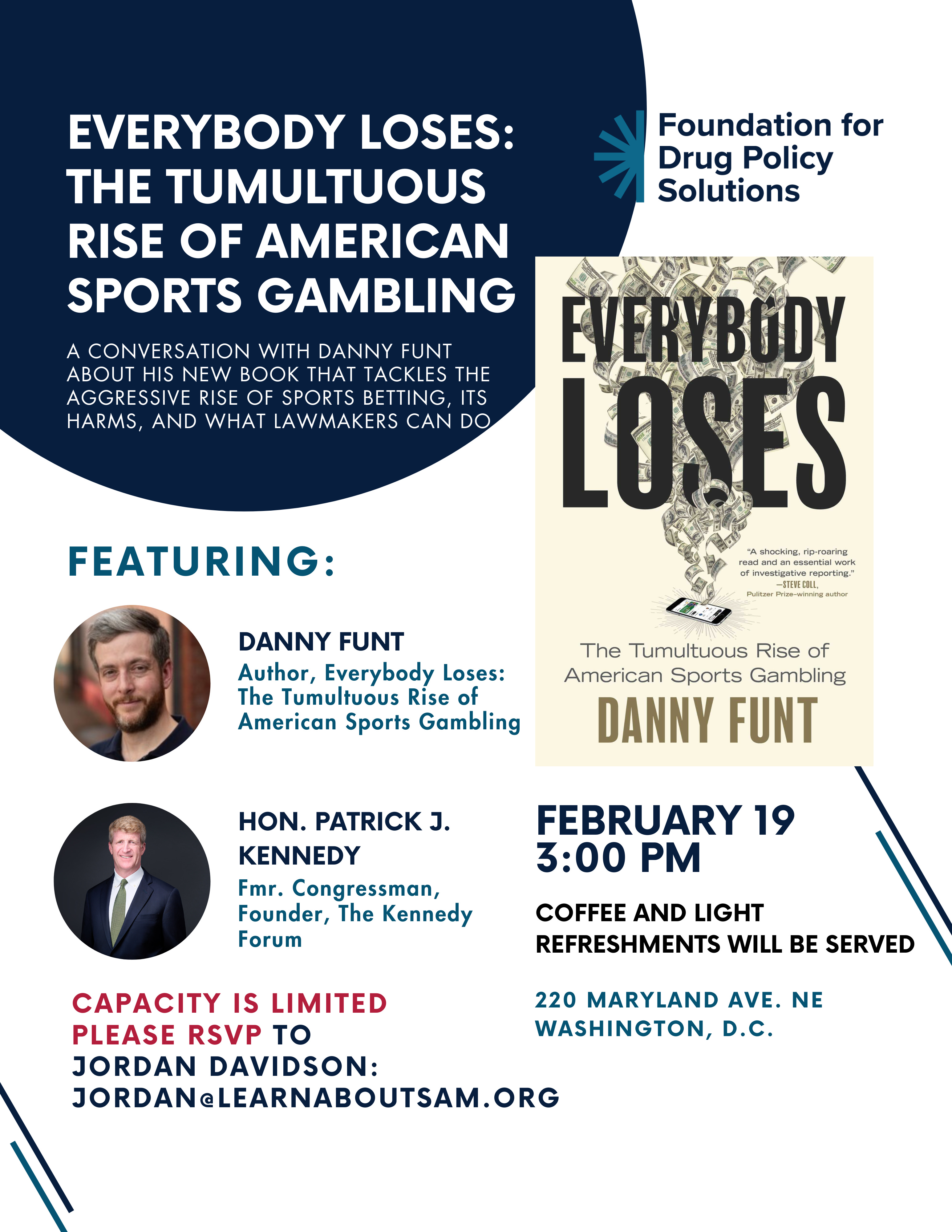 So, I was deeply honored when Rep. Kennedy asked me to join him in Washington, D.C., to discuss my book Everybody Loses: The Tumultuous Rise of American Sports Gambling. Not only do gambling addictions tend to coincide with other substance abuse, but the explosion of sports betting across the U.S.—fueled by industry tactics that some call predatory—could produce a public-health crisis in its own right.