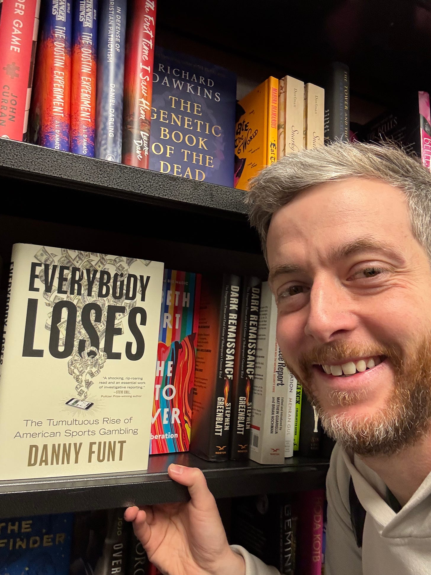 I arrived in D.C. yesterday and visited Georgetown to discuss my book with Nate Seidenstein, sports editor of the campus newspaper The Hoya. I cherished every minute working there. Before the interview, I visited the campus bookstore and was so happy to see Everybody Loses on sale at my alma mater, I took this derpy selfie: