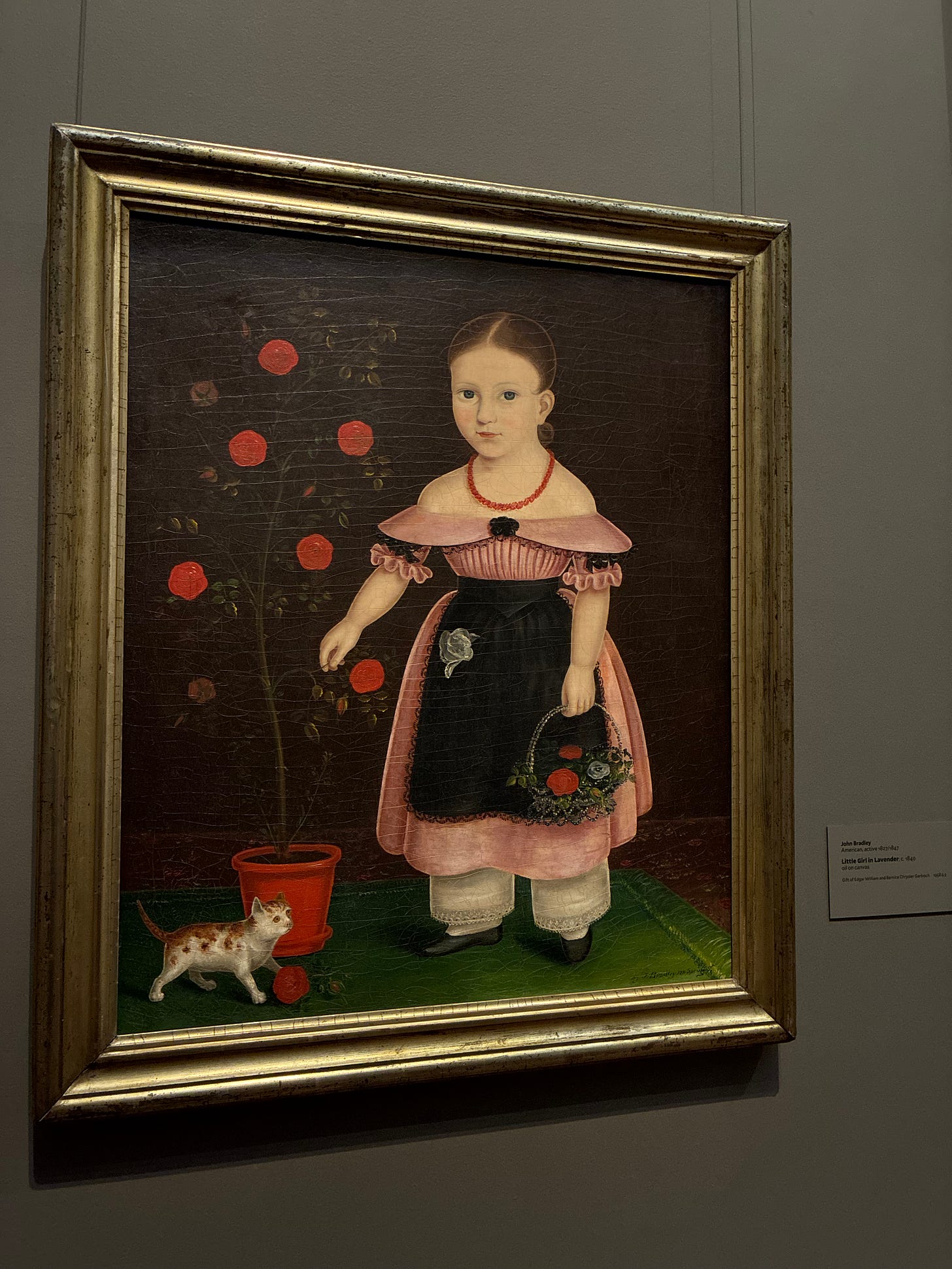 P.S. For years, my Mom and I have gotten a kick out of the the extreme disproportions often found in portraits of children. Apropos of Wynnie, here is a painting I saw today at the National Gallery featuring either the smallest cat ever or the largest girl: